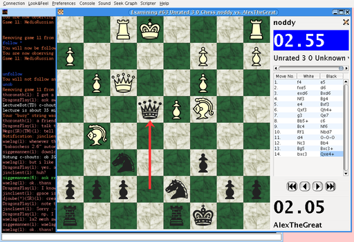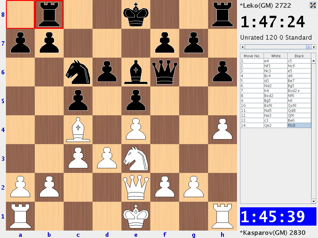 Jin's board in fullscreen mode at 1024x768 while observing the Kasparov vs. Leko game from Linares 2004 |