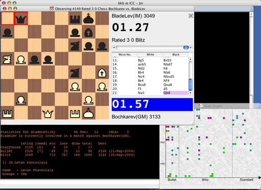 Jin's main window on ICC under Mac OS X. The board uses the a light wooden pattern and the Mark piece set. |